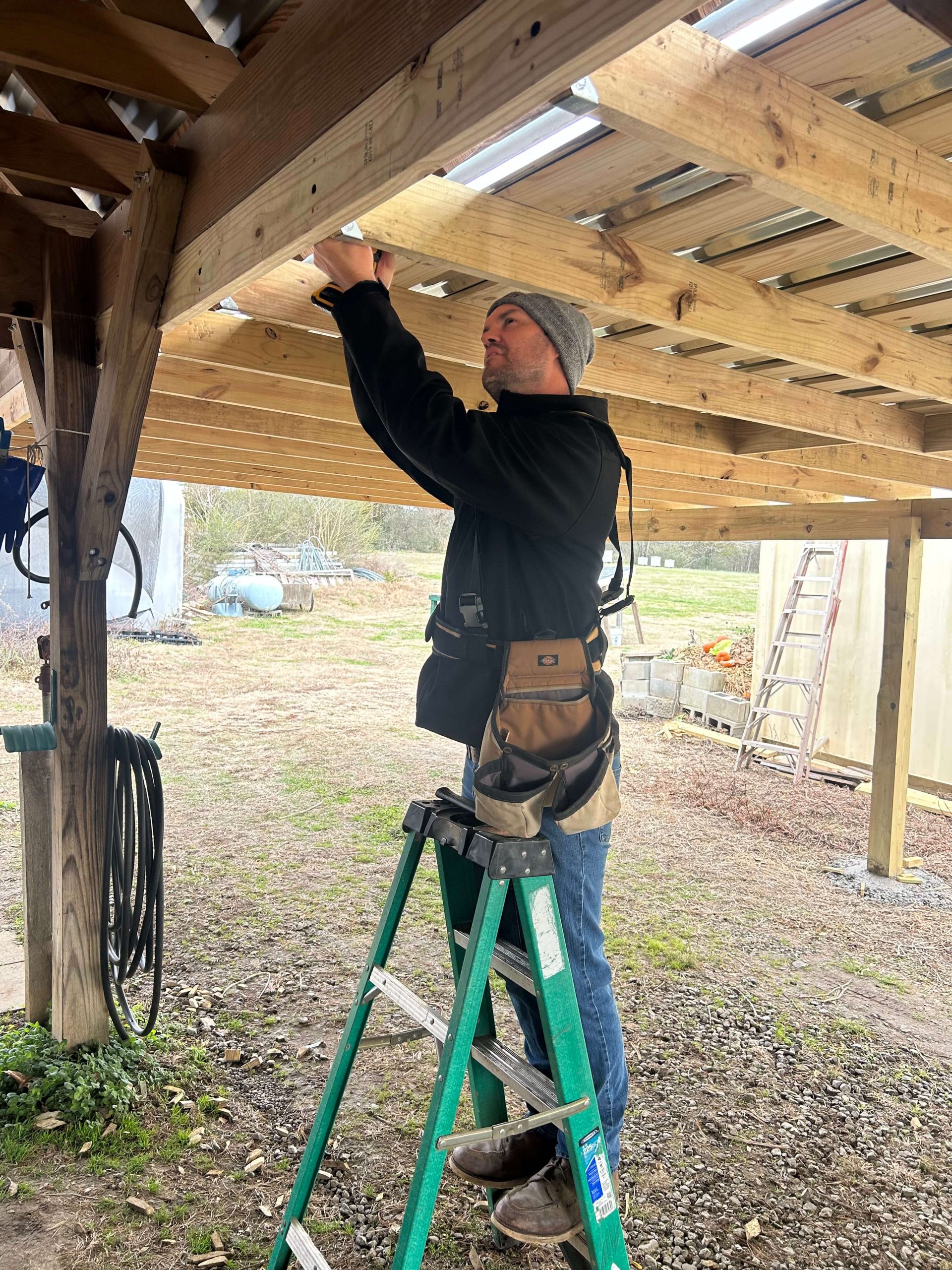 Outcome: Old School Farm completed a pack shed expansion that significantly improves post-harvest handling and community use of the farm. The farmers on staff worked together to set poles and extend the roof, creating a shaded, functional space where freshly harvested produce can be quickly cooled, processed, and packaged for delivery to local food pantries. The improved infrastructure enhances food safety and efficiency while supporting the farm’s commitment to feeding its community.